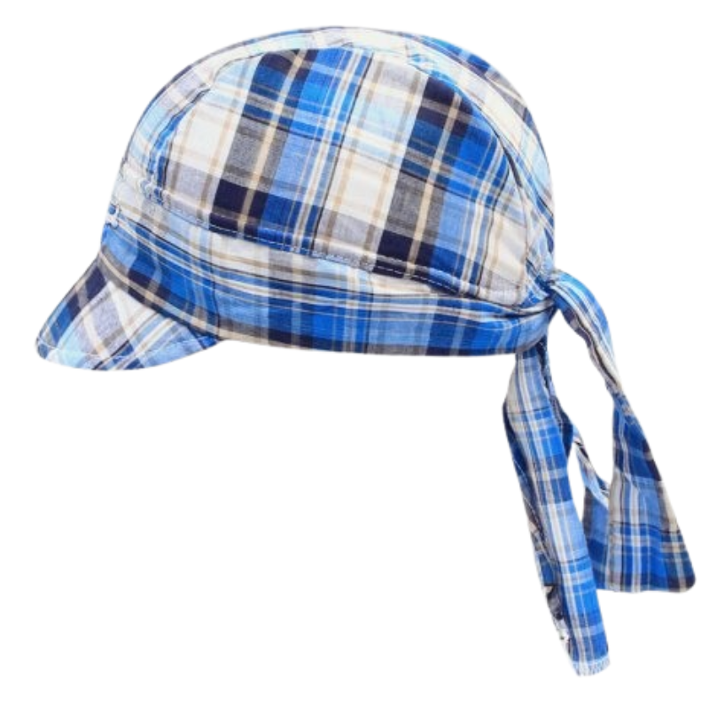 Dětský letní šátek střihu"pirát" s kšiltem z lehkého materiálu, měkký kšilt, vzadu libovolné uvázání dle obvodu hlavy.