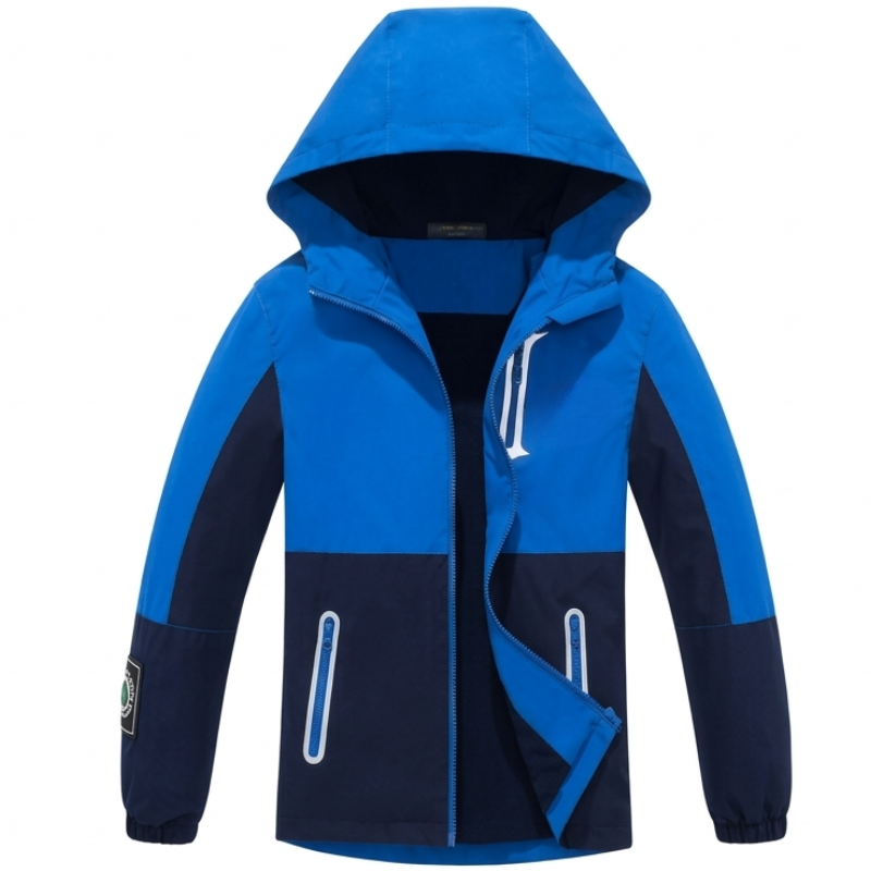 Bunda vyteplená z rubu fleesem, líc je šusťákový, kapucka je oddělitelná zipem, v kapuci je flees, rukávy jsou staženy do gumka.