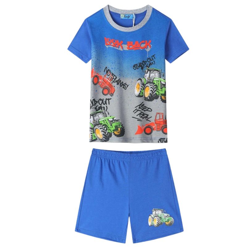 Pohodlné dvoudílné pyžamo od značky KUGO je díky lehkému materiálu a krátkému střihu ideální volbou pro teplé letní měsíce. Veselý design s motivem stavebních autíček potěší každého malého milovníka stavby. Komplet je velmi univerzální – skvěle poslouží jako pyžamo, ale díky kvalitnímu provedení jej lze využít i jako domácí oblečení nebo letní set na ven.