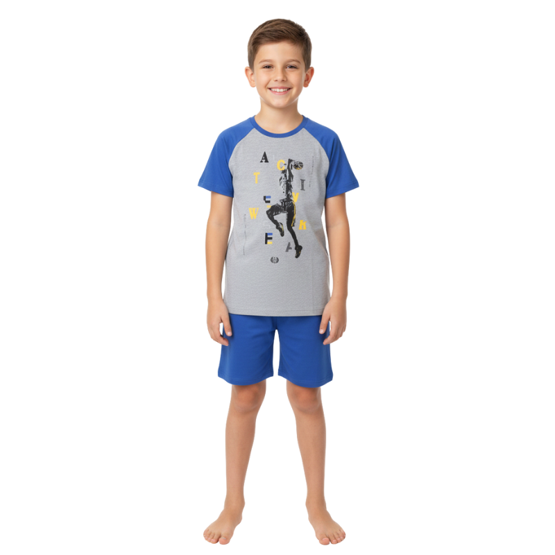 chlapecké letní pyžamo složení - 100% bavlna prací symboly - praní při teplotě 30 stupňů, slabé sušení v sušičce, žehlení do 110 stupňů. lze použít buď jako chl.komplet nebo letní pyžamko,     velikostní tabulka: velikost 98 => vrchní díl: Délka 43 cm, Šířka 32*2 cmšortky...