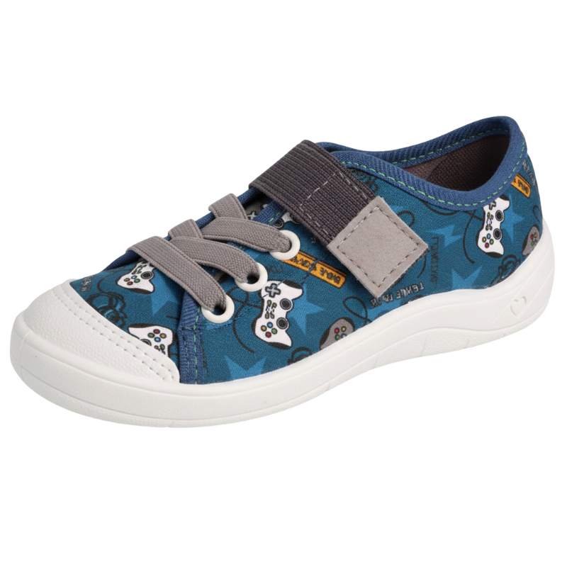 vrchní a vnitřní část je textilní, mají pružnou podrážku, mírně vyvýšená pata, zapínání na suchý zip, pevný opatek,