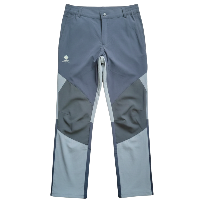 • slabé softshellové kalhoty,  jsou zapínací na zip+knoflík s háčkem, poutka na pásek, boky v pásku jsou staženy gumou, kapsy na zip