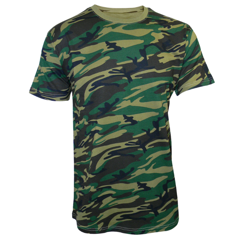Pánské maskáčové tričko 100% bavlna,  gramáž - 150 g/m2   dle etikety - prát na 40 stupňů v pračce, slabé sušení v sušičce, žehlení do 110 stupňů.   rozměry: Vel. S - délka 69 cm, šířka 48*2 cm vel. M - délka 72 cm, šířka 51*2 cm, vel. L - délka 74 cm, šířka 54*2 cm vel.XL - délka 76 cm, šířka 58*2 ...