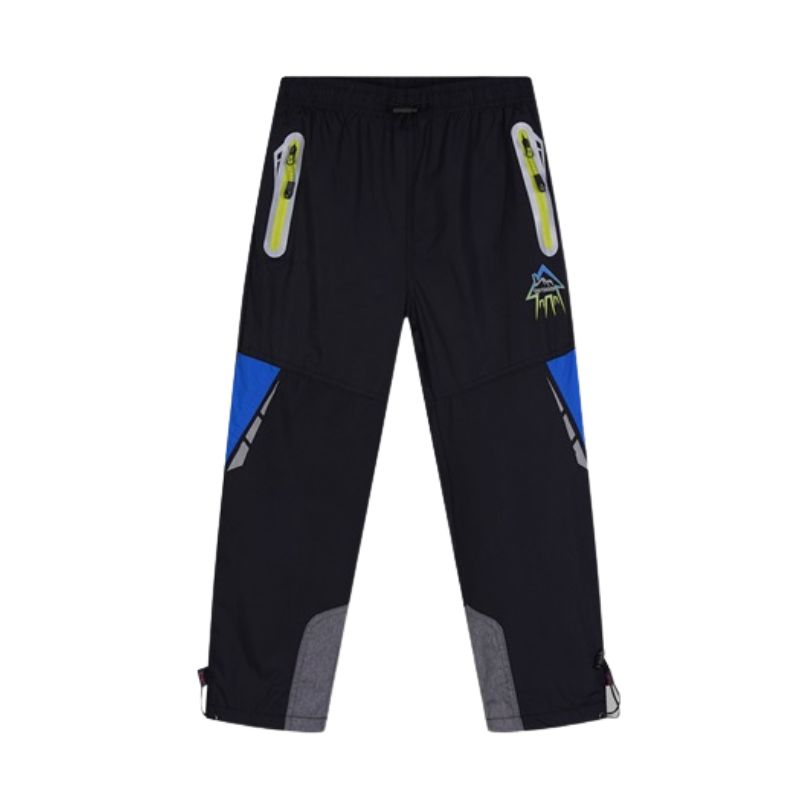 - z rubu je flees, dvě kapsy na zip.V pase je guma + šnůrka na stažení s olivkou, dole na konci nohavic jsou olivky, šusŤák je nepromokavý, reflexní prvky