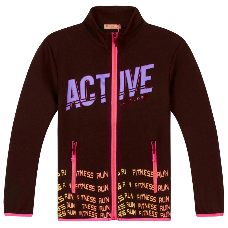 - materiál 80%bavlna +15% polyester+ 5% elastan, celopropínací na zip, vpředu 2 kapsy, nápis ACTIVE je růžové barvy