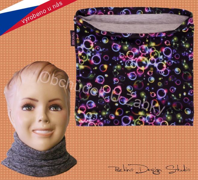 Pružný tunel na krk ze vzorovaného polaru, , je podšitý bavlněným úpletem, uni velikost od nejmenších až po ty největší (přes hlavu přetáhne i dospělý)