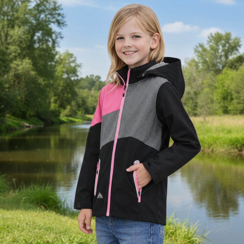 Dívčí SOFTSHELLOVÁ BUNDA nezateplená černá/růžová Kugo HK5660