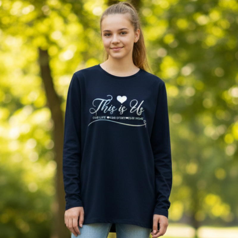 Dívčí tričko dlouhý rukáv složení - 95% bavlna, 5% elastan   prací symboly - praní v pračce na 30 stupňů, slabé sušení v sušičce, žehlení do 110 stupňů.   velikostní tabulka: velikost 146 - délka 54 cm, šířka 38*2 cm, délka rukávu od krku 60 cm velikost 152 - délka 56 cm, šířka 39*2 cm, délka ru... celý popis