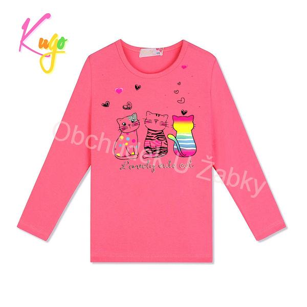 Dívčí tričko dlouhý rukáv Kugo tm.růžové