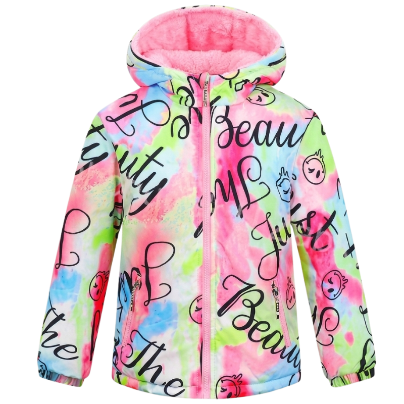 - Zimní bunda vyteplená vatelínem, z rubu je flees, líc je šusťák,kapucka je pevnou součástí bundičky, v kapuci je flees, rukávy jsou staženy do gumky.