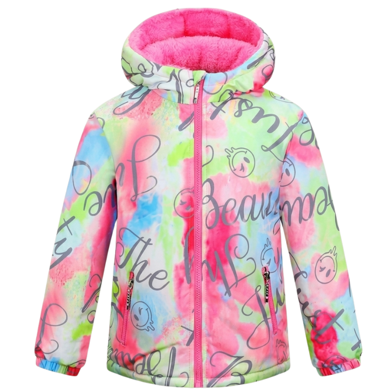 - Zimní bunda vyteplená vatelínem, z rubu je flees, líc je šusťák,kapucka je pevnou součástí bundičky, v kapuci je flees, rukávy jsou staženy do gumky.