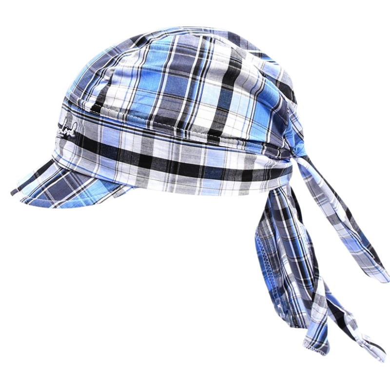 Dětský letní šátek střihu"pirát" s kšiltem z lehkého materiálu, měkký kšilt, vzadu libovolné uvázání dle obvodu hlavy.