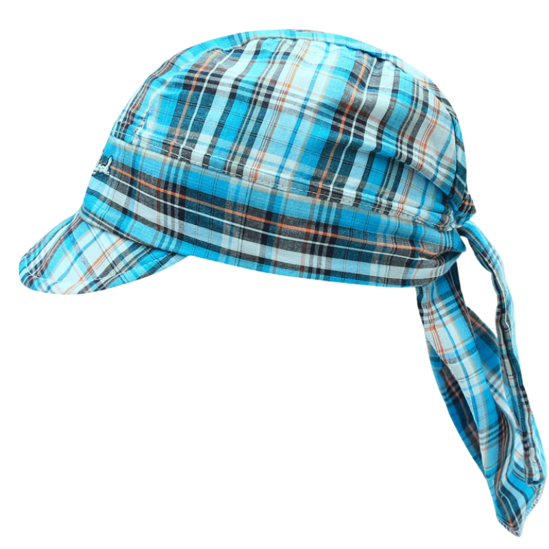 Dětský letní šátek střihu"pirát" s kšiltem z lehkého materiálu.